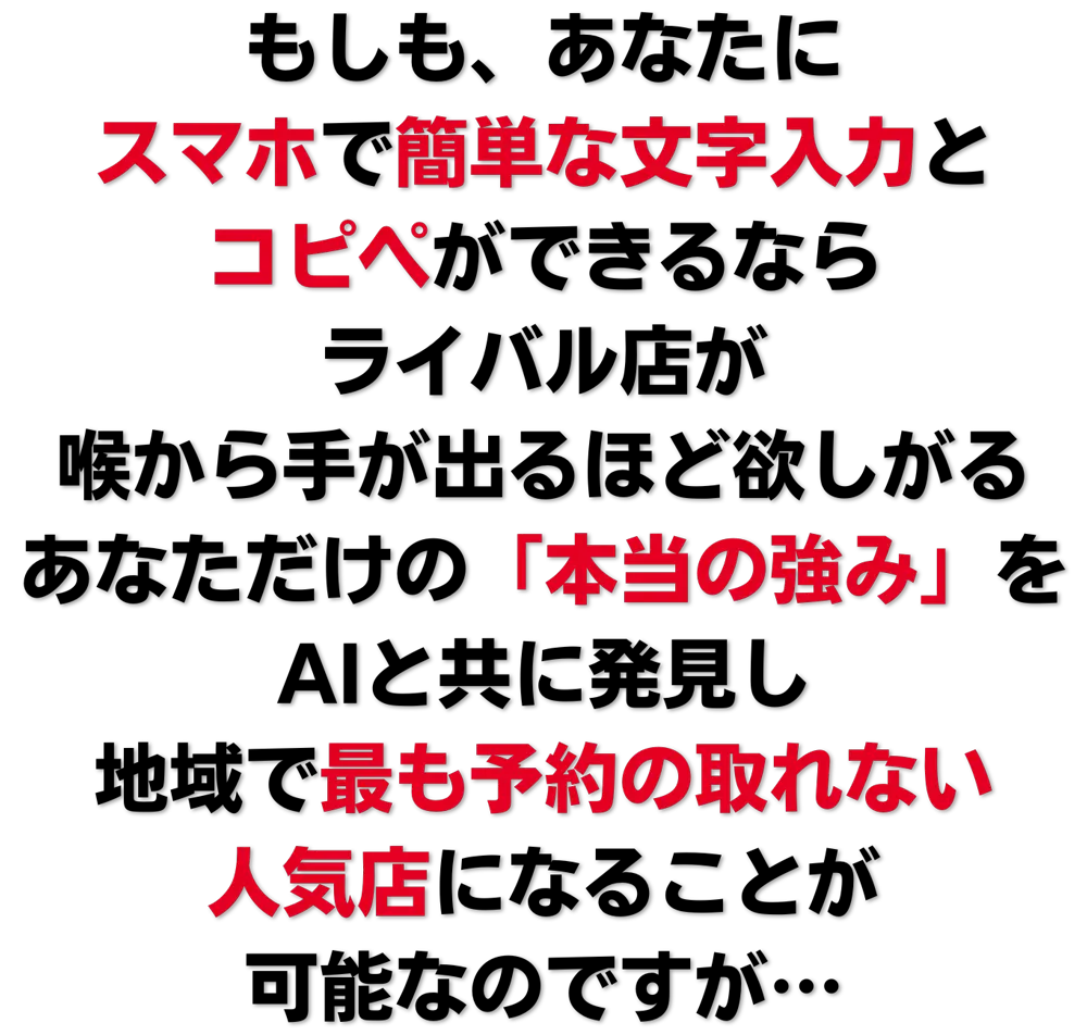 そして、その問題を解決するために、AIをあなたの「最高の右腕」に変え、どんな店でも行列のできる『引力』を生み出してしまう、具体的で再現性の高い「3つのステップ」からなる設計図も、全て公開しています。